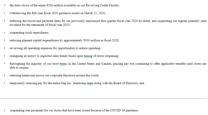 10.暂时降低整个Gap领导团队以及董事会的薪酬;