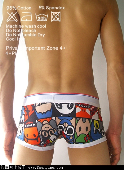 男人无论多大年纪,内心里一定住着一个爱玩的孩子。他们的卡通情节从孩提时刻就已经根深蒂固了,这款卡通内裤正好契合了男人的童趣心理,可爱卡通形象演绎出了男人那颗永不老去的孩子心,纯棉的材质和剪裁线条在保证舒适性的同时更能自由伸展,身着4+PIZ内裤让你彻底摆脱束缚,内裤极富人体工程学的设计缝纫,无限亲近男人的腰间皮肤,前身立体感的身形设计,100%为男人的前部塑性,达到最理想的状态,4+PIZ内裤为男人带来不老童心的同时更能阳刚“力”之美.