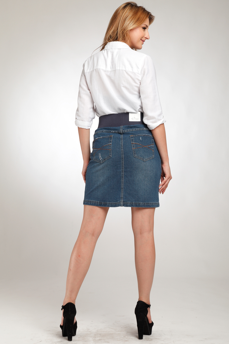 【产品亮点】:2013夏季新款松紧腰牛仔中裙,宽边的松紧腰设计,起到很好的收腹效果,胖MM们再也不用担心肚子上的肉肉包不住了。口袋上磨破的洗水效果,给这款A字裙带来一抹时尚的气息,简单且不单调。修身包臀的上身效果,显瘦又百搭。