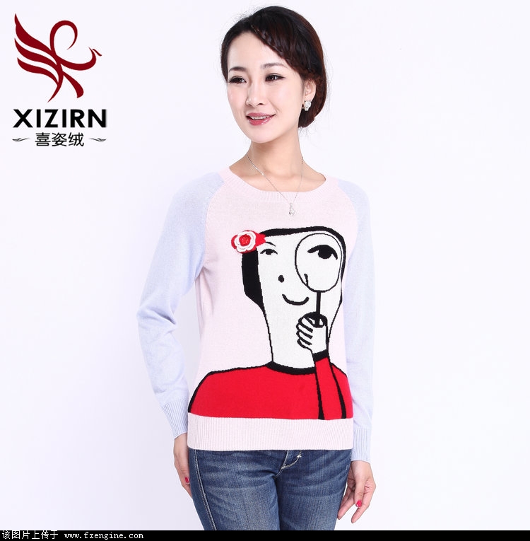 喜姿绒圆领羊绒衫 红心提花短袖修身羊绒衫定制时尚秋冬连衣裙