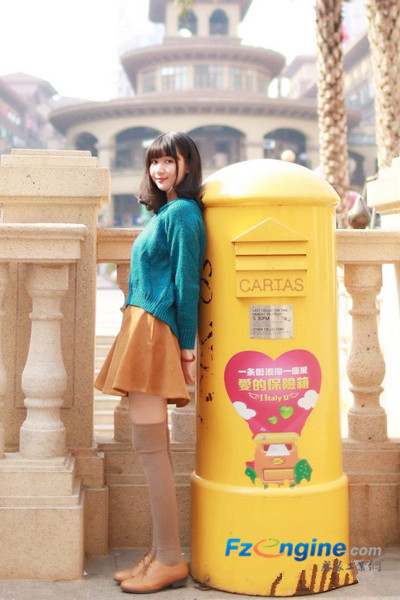 蓝绿色毛衣,宽松版型,短款设计,适合身材矮小的女生穿,轻松穿出完美身材。小编建议搭配姜黄色短裙和平跟短靴,时髦有型。