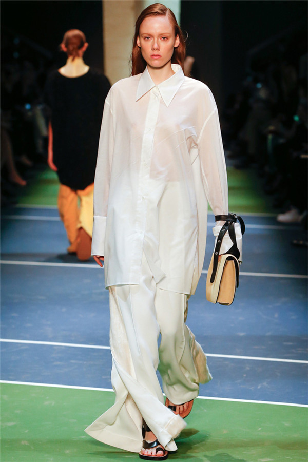 当地时间3月6日,Céline(思琳)于巴黎时装周发布2016秋冬系列。本季系列大秀在巴黎圣日耳曼手球场拉开序幕,以蓝绿色系为主色调,带来了耳目一新的清新感。简单的场景布置让我们将更多的视线聚焦于秀场本身,延续着品牌一贯的核心风格,利落的剪裁,凌厉的线条让我们更加贴近衣料原始的质感。