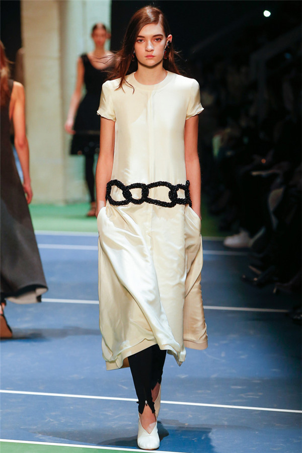 当地时间3月6日,Céline(思琳)于巴黎时装周发布2016秋冬系列。本季系列大秀在巴黎圣日耳曼手球场拉开序幕,以蓝绿色系为主色调,带来了耳目一新的清新感。简单的场景布置让我们将更多的视线聚焦于秀场本身,延续着品牌一贯的核心风格,利落的剪裁,凌厉的线条让我们更加贴近衣料原始的质感。