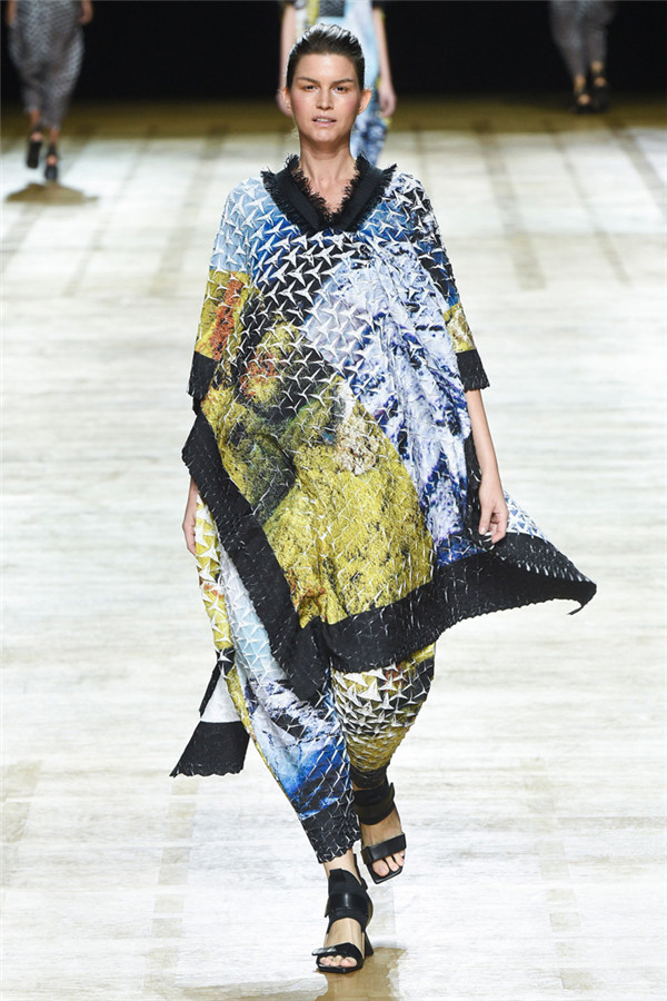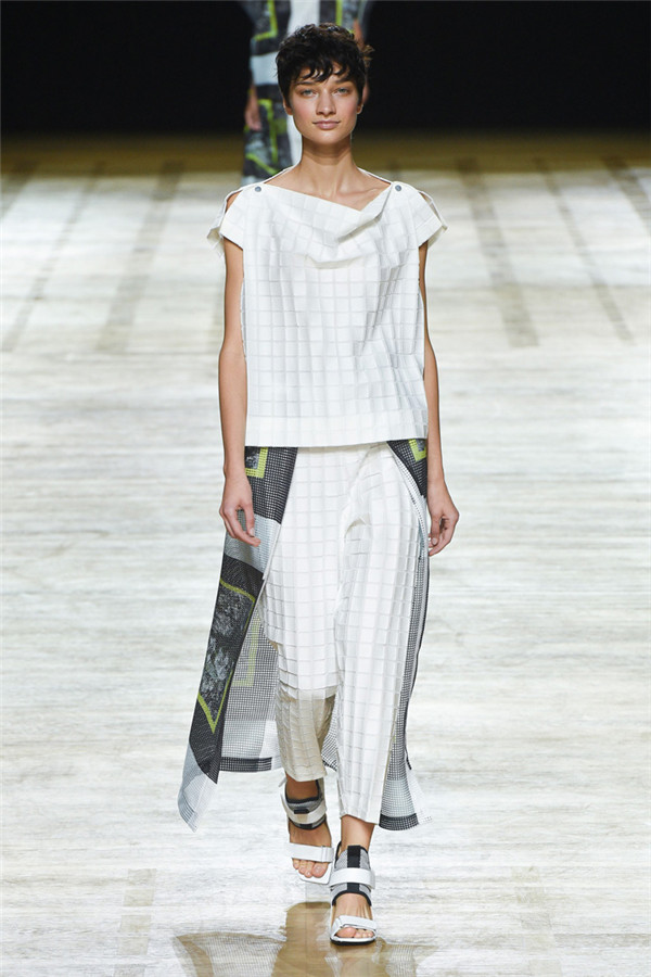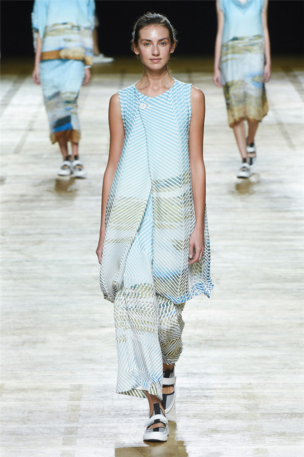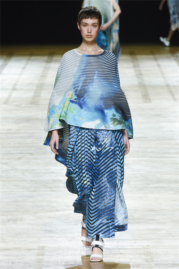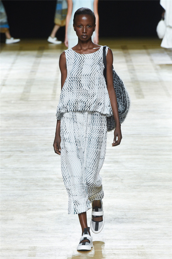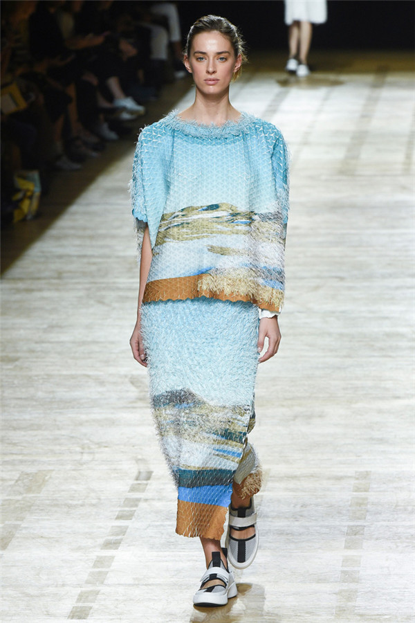 日本设计师品牌 Issey Miyake(三宅一生)于巴黎时装周发布2018春夏系列时装秀,本季灵感来源于设计团队对于冰岛的记忆。有滚烫的火山岩也有寒冷刺骨的冰川景象,两者交替的出现,带你感受水深火热的世界。宽大的披肩式外套,静谧感十足的几何印花,海洋天空冰川以及草地的抽象图案,让整个系列充满了大自然般的美感和壮观。