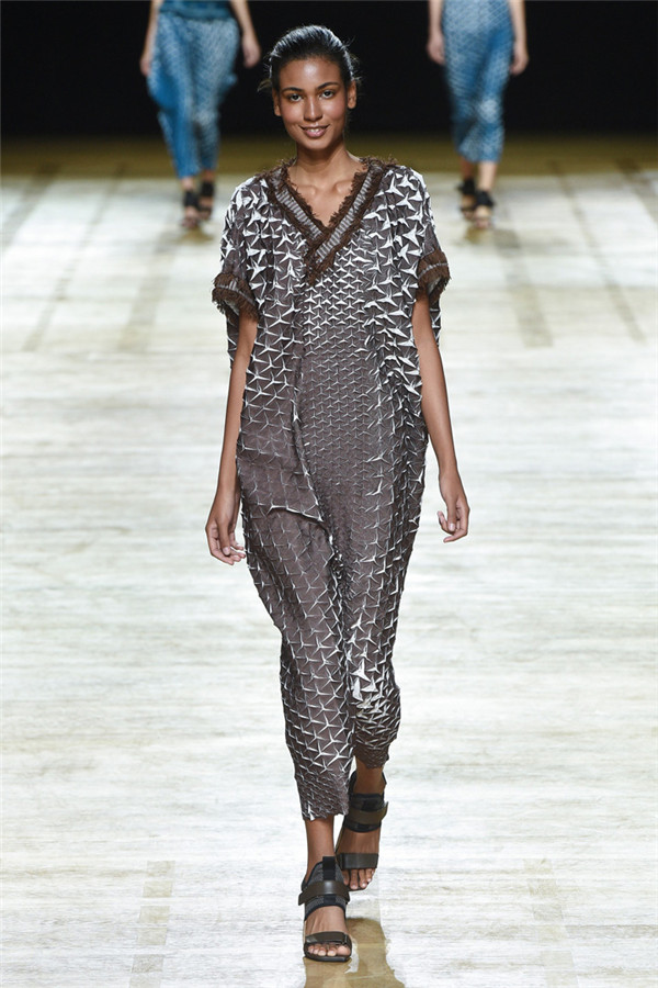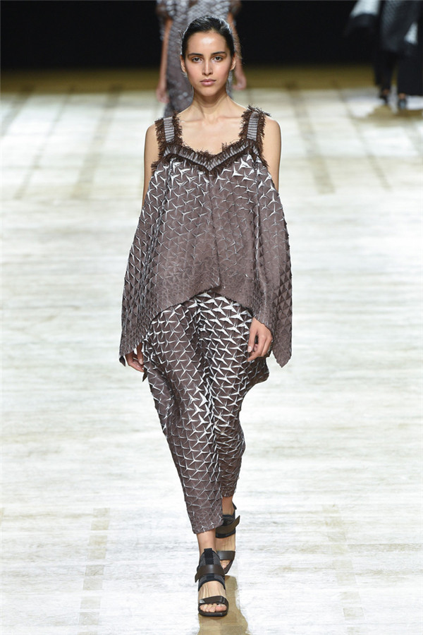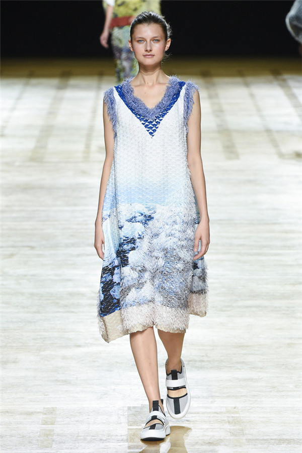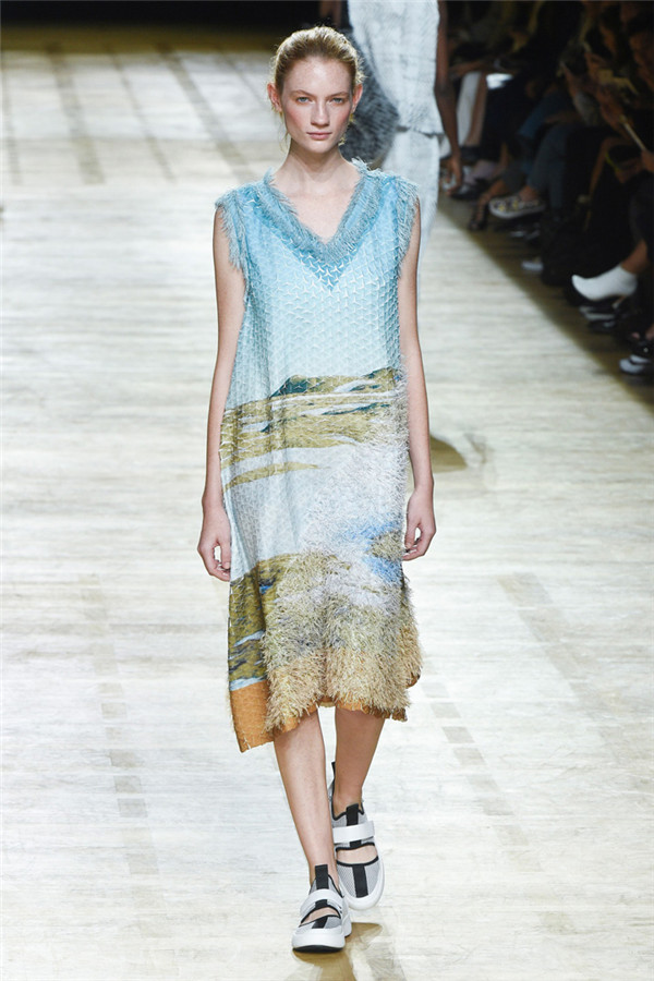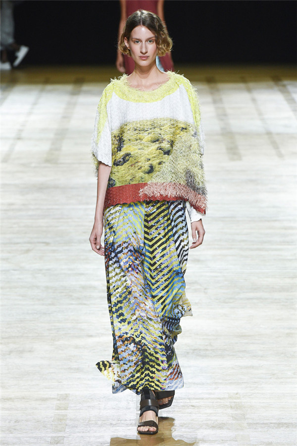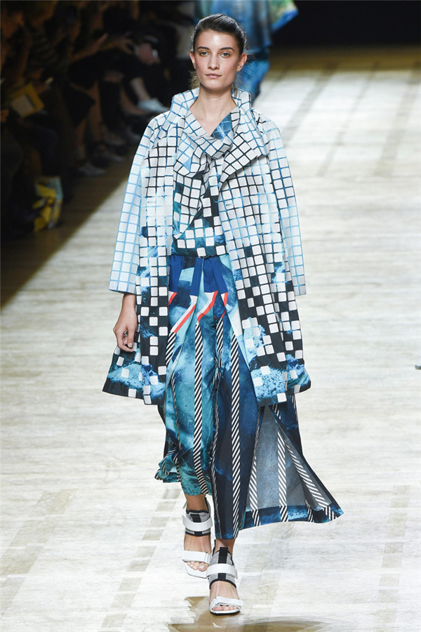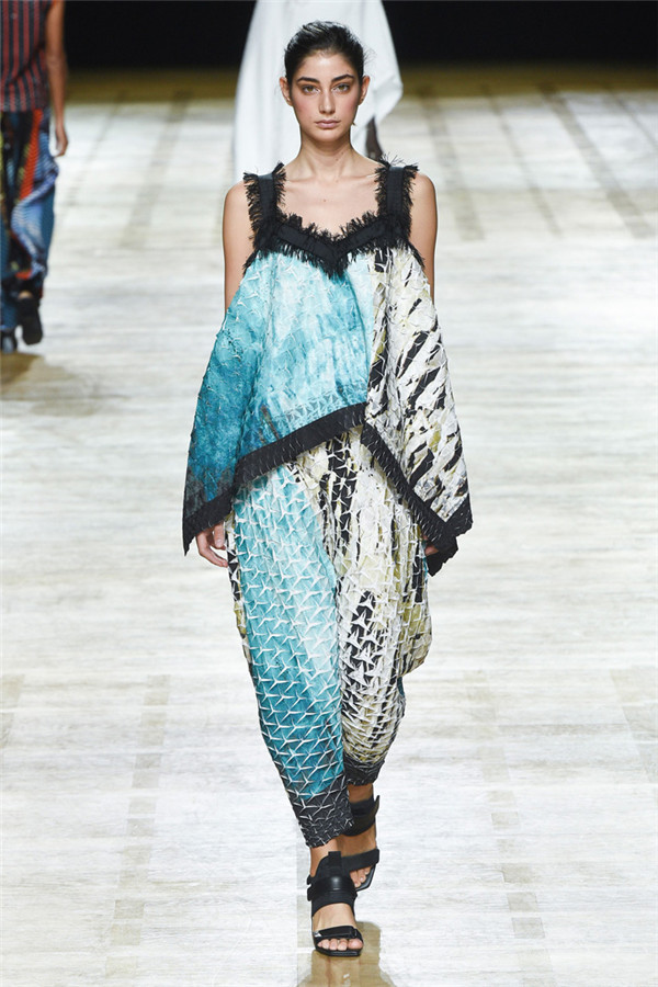 日本设计师品牌 Issey Miyake(三宅一生)于巴黎时装周发布2018春夏系列时装秀,本季灵感来源于设计团队对于冰岛的记忆。有滚烫的火山岩也有寒冷刺骨的冰川景象,两者交替的出现,带你感受水深火热的世界。宽大的披肩式外套,静谧感十足的几何印花,海洋天空冰川以及草地的抽象图案,让整个系列充满了大自然般的美感和壮观。