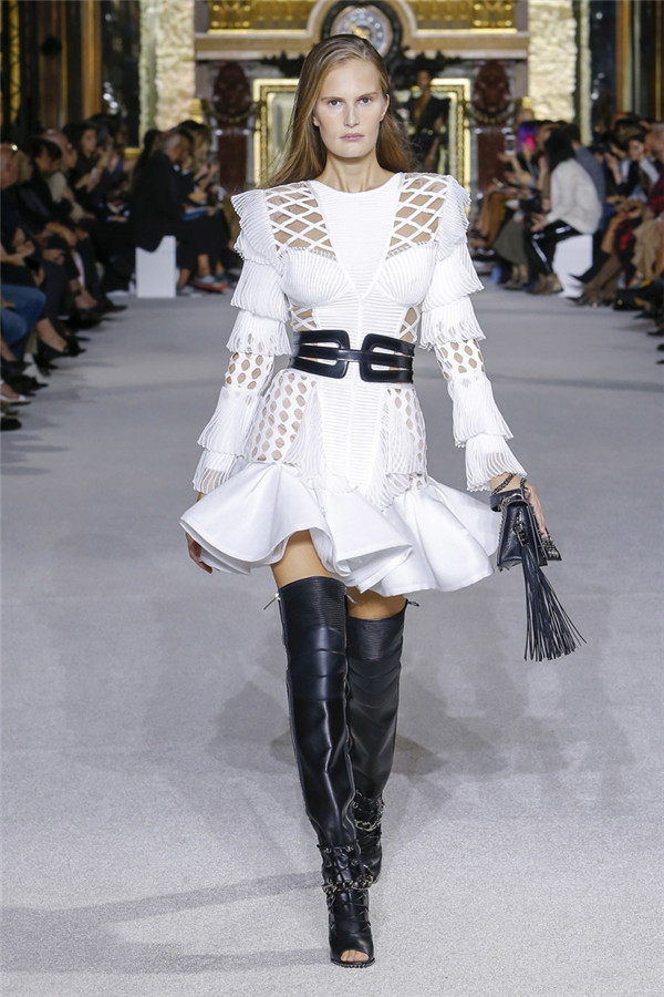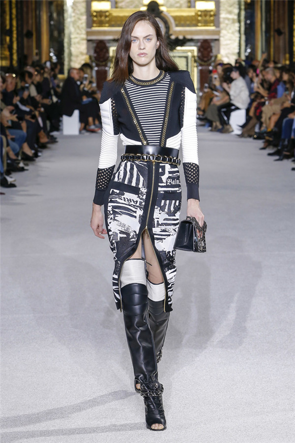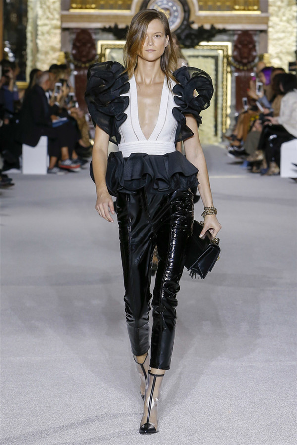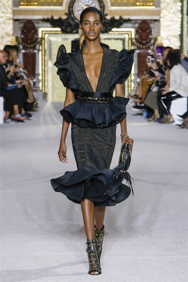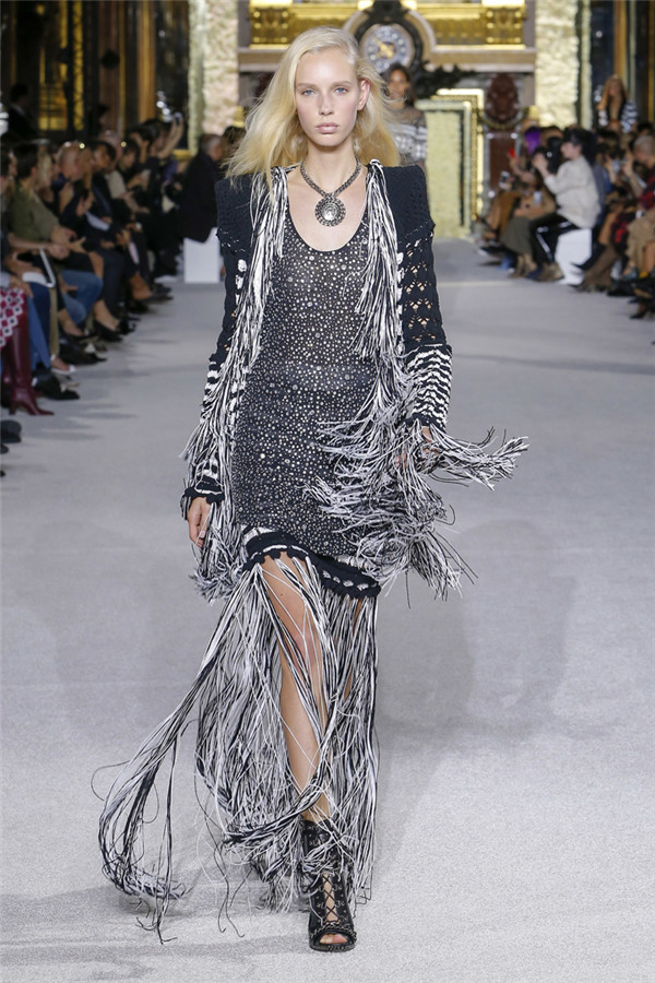法国时尚品牌 Balmain(巴尔曼)于巴黎时装周发布2018春夏系列时装秀,本季系列以黑白与深蓝色为主色调,编织元素、多层次的花瓣裙摆频频出现,满满的都是“大女人”的狂野气场。