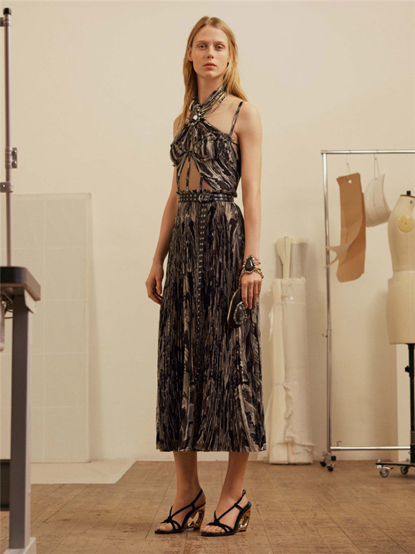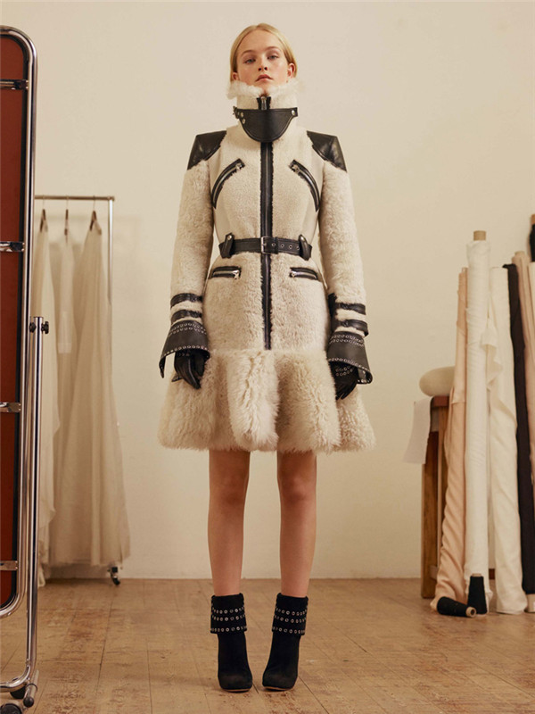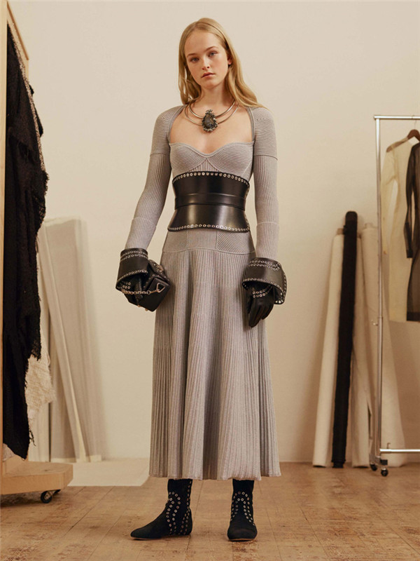 英国设计师品牌 Alexander McQueen(亚历山大·麦昆)释出2017早秋系列LookBook,本季设计师从英国著名雕塑家芭芭拉·赫普沃斯的作品中汲取灵感,系列所呈现的素雅端庄轮廓,令人想起伊索尔德、格尼维尔和湖上夫人等中世纪亚瑟王国传奇的女英雄。经典针织连衣裙饰以线条柔美的透薄丝料,软呢或雪尼尔针织服。西服一侧采用了环形悬垂的剪裁,衬托出非对称的美感。