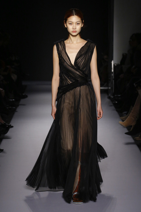 这次的Lanvin2018秋冬女装秀从现代女性的数字生活方式中汲取灵感,以前所未有的大胆风格,为严寒的冬季注入动感活力,令“都市夜晚”绽放出不一样的时尚光芒。艺术家Krista Kim的“数字艺术”作为新现代主义的象征标志,成为极致现代的秋冬系列女性服饰的主题。Olivier Lapidus在2018秋冬女装系列的多件单品上重新演绎了这位艺术家的数字艺术作品,褶皱、印花以及配饰上的这些元素堪称是对色彩的伟大赞颂。深暗色调突然放射出光芒,粉色变为绿色,再变为蓝色,呈现出极为独特的浓郁色调,就好像来自一个未知的世界。
