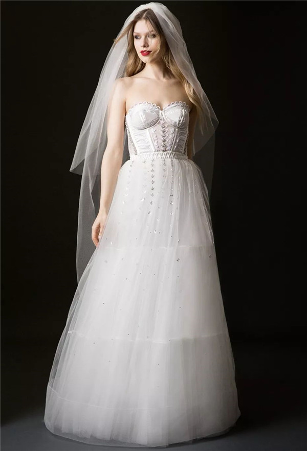 英国人气新星设计师 Alice Temperley 释出2019春夏婚纱系列LookBook,本季用了七件式的新娘造型颠覆了这一想法,将性感的闺房造型融入了礼服本身,运用了刺绣和紧身衣的细节重新定义了新娘礼服。没有小吊带的婚纱对于新婚之夜是不完美的,并且这种元素在穿过之后通常就会被压到箱底了。我们也可以看到来自她成衣系列的元素。Temperley引入了她Toledo连衣裙的绣花元素并加以改进,并配合了镶有亮片造型的透明紧身衣。此外与Temperley的其他系列一样,都提供了对应的面纱或者水晶发饰。