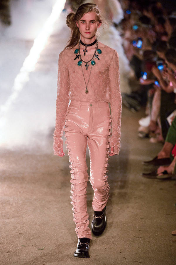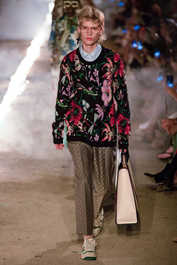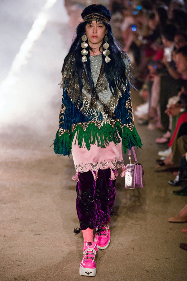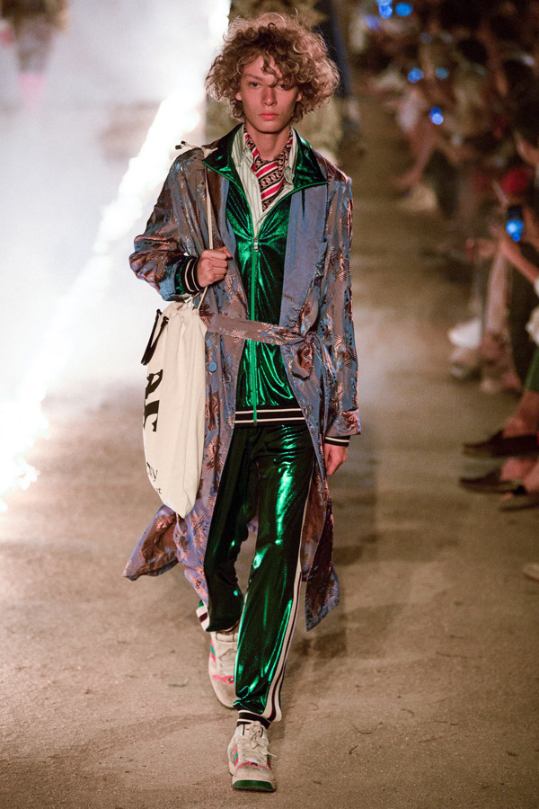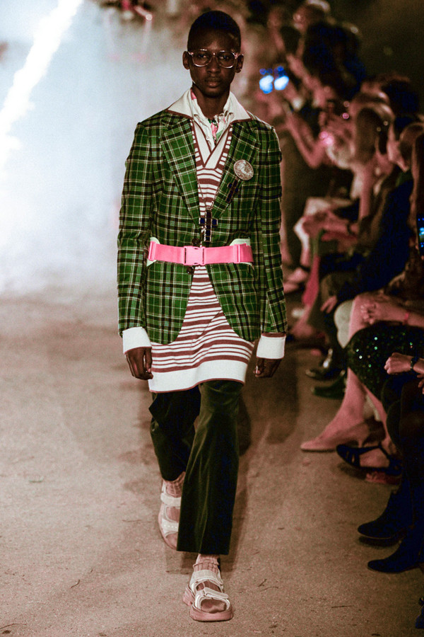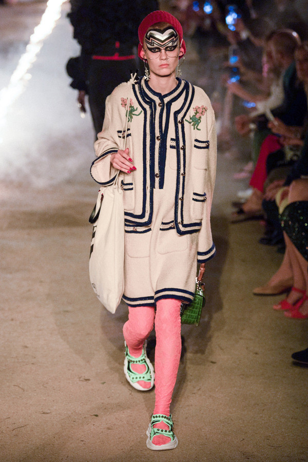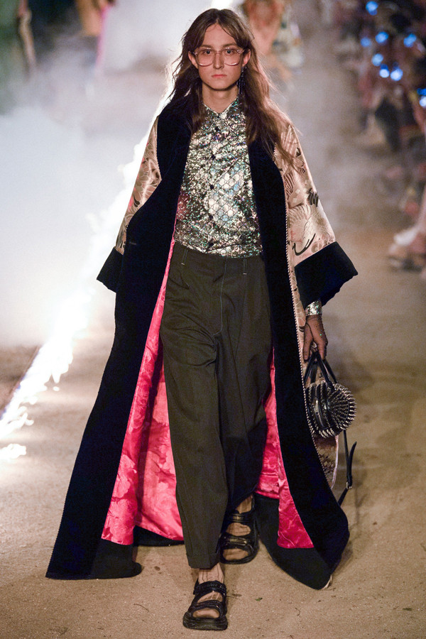 Gucci创作总监Alessandro Michele这样形容这次的2019早春时装秀,这位灵感和想象力源源不断的天才,也的确做到了把死亡包装成一件近乎令人迷恋的事物。夜幕降临,火光摇曳,南法老城阿尔勒旧城墙外的古罗马陵园阿利斯康(Alyscamps)的露天林荫道上,男女模特们身着充满奇异元素的衣服鱼贯而出,生与死、地狱和天堂、哥特和摇滚,一切你所以为的界限,都在霎时间不复存在了。