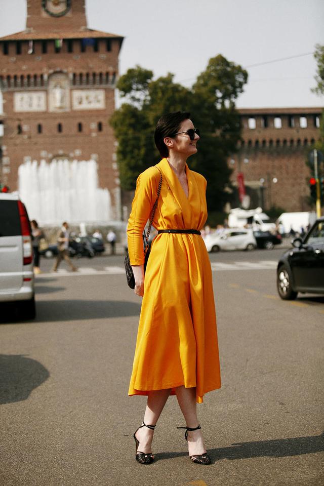 一条腰带让女人曲线一览无遗,长袖的连衣裙让温暖指数上升,还是颜色选的好,这么明亮的橘黄色,看着就暖洋洋的呢!
