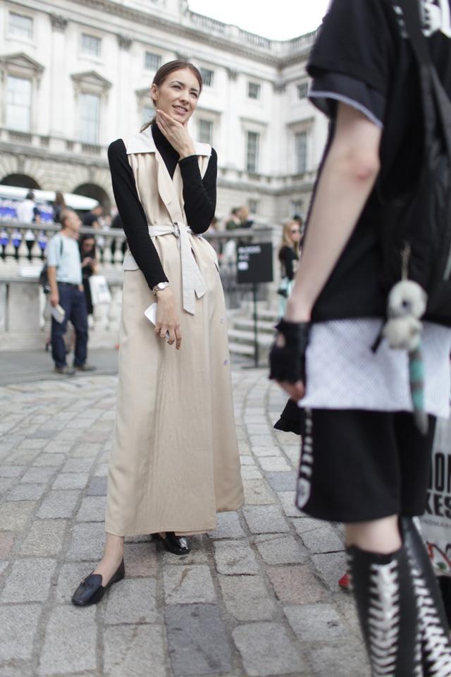 这样的跌穿搭配也是潮且保暖的哦,马甲大衣拦腰一系,里面尽情搭配各种保暖神器,譬如黑色针织打底衫,这样长度的大衣,你里面就是穿保暖秋裤也没人看得到啦!