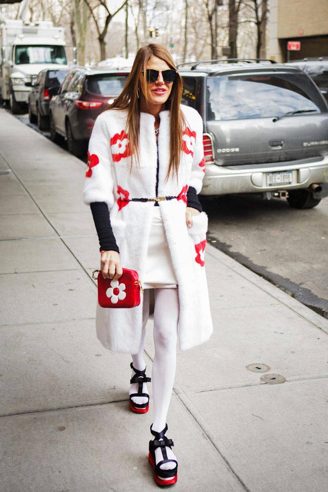 看到的第一印象就是,这身look用心啊!横条、撞色、循环图案、金属色全用上了,竟然不乱??看来大家可以学习一下这个在白色大衣外做文章的方法!看着就暖和,外套穿了几层?