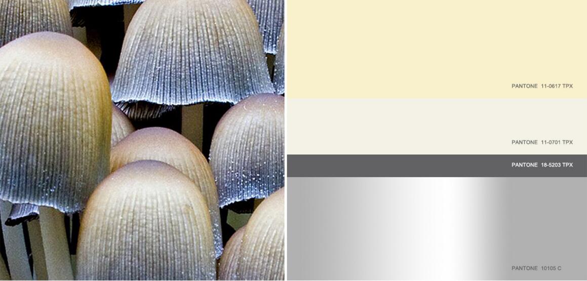 简约色彩运用结合了中性暖色和中性冷色,主打色彩乳酪色搭配浅茉莉,与青灰色和炽白银形成鲜明对比。这一女性化通用色调呈现出柔焦感,浅茉莉和淡花瓣等浅白色为石灰岩色和青灰色等阴暗灰色增添了新意。