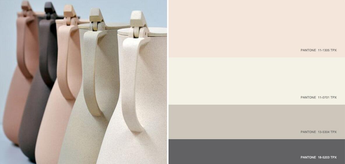 简约色彩运用结合了中性暖色和中性冷色,主打色彩乳酪色搭配浅茉莉,与青灰色和炽白银形成鲜明对比。