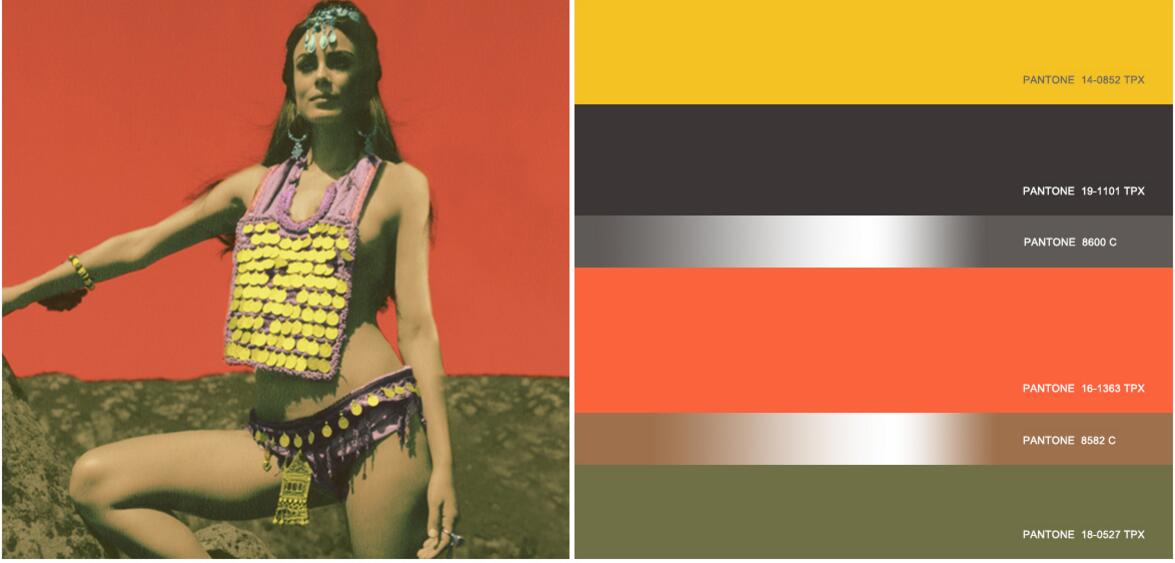 能量十足的野黄花和炽烈的红橙色从黑色和池塘绿等泥土深色中脱颖而出,除了池塘绿和红橙色等主打色彩外,基本金属色、赤铁矿色和古铜色也是必不可少的新色彩。