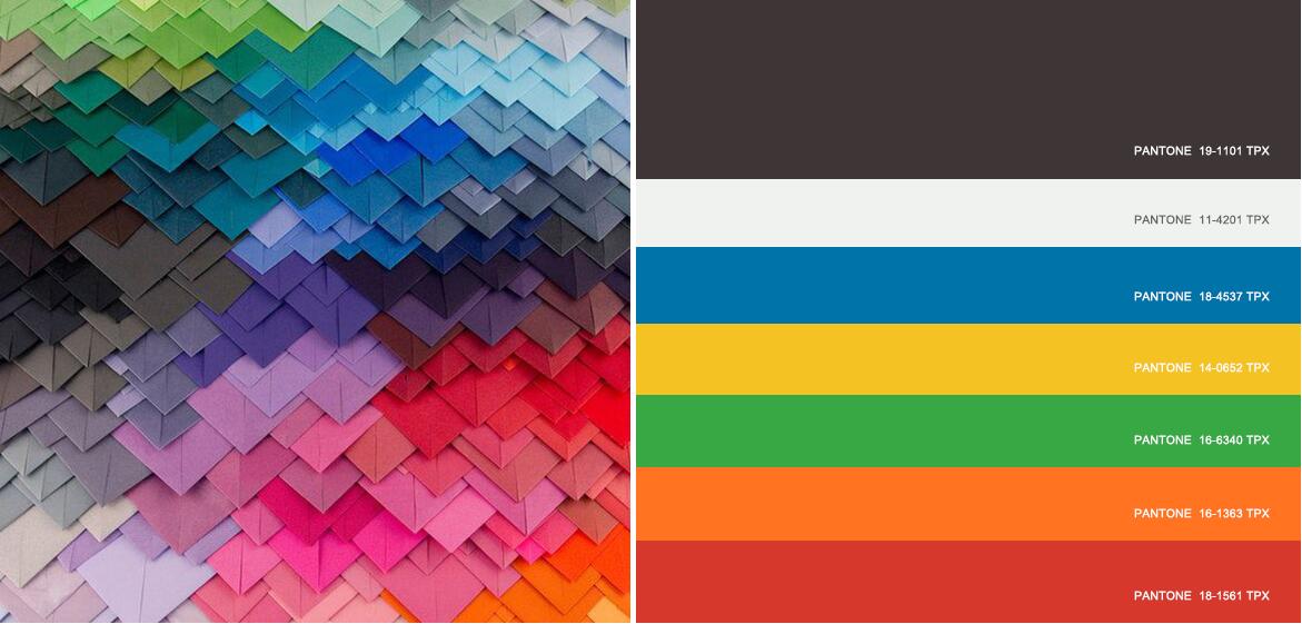 通过文化和运动探索色彩身份,以黑色和白色搭配接近原色的湖蓝色、野花黄、苹果绿、红橙色和熔岩红色。