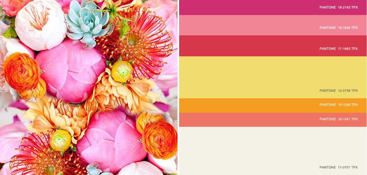 乐观而具有商业价值的夏季色彩组合。这一重要的季节性粉色主题尝试了超级粉、软糖粉、辣椒红和天竺葵红,而奶黄白、金盏花色和浅茉莉色令整体色彩变浅。