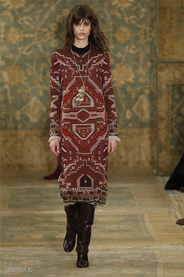 复古绣金色和砖红色装点印花,为民俗风图案打造逼真的旧外观。设计师们从复古锦缎上汲取灵感,以带状和拼接形式使用大花图案。新兴技术工艺为波西米亚外观增添现代感,适合高端市场。
