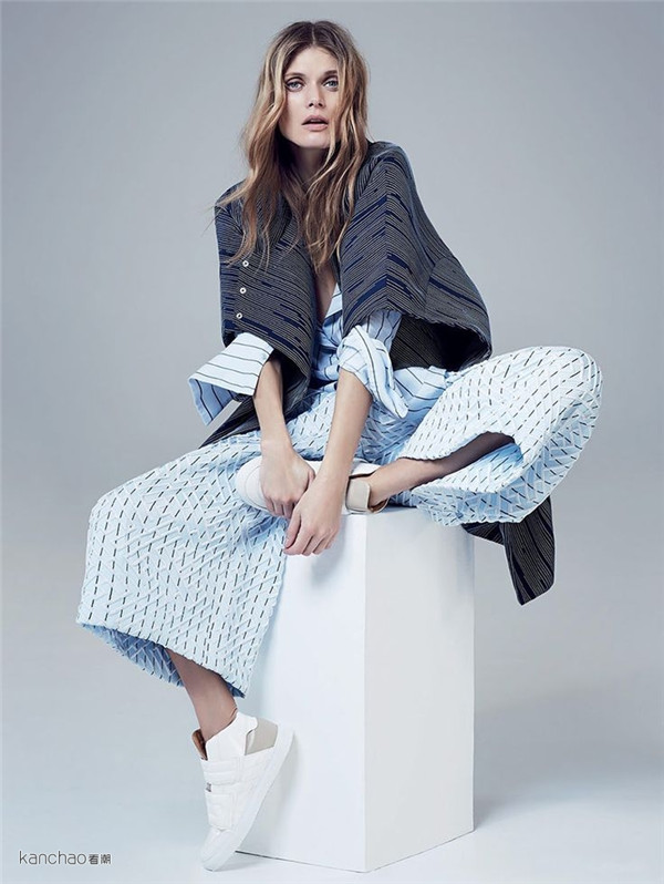 丹宁风也是今季的一大流行点之一,和它近似的靛蓝色衬衫料拥有全球手工艺外观。雕刻式浮雕人字纹结构富有立体感,自然白和亚麻色轻纱遇上靛蓝,更新全球风靡的纯正复古靛蓝。