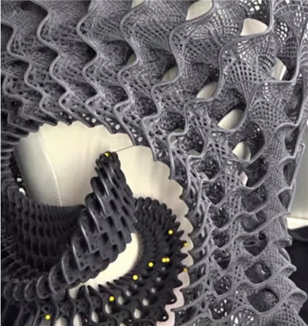来自以色列的年轻设计师Danit Peleg向我们介绍了她是如何使用3D打印技术来设计制作自己的时装作品的。她花费9个月时间研究,2000个小时生产,完成了3D打印服装系列。这个系列由五件服装组成,打造柔软性和强度俱佳。她利用FilaFlex单纤维和Witbox家用打印机,借助OPtitex软件打造出带有复杂图案的服装。