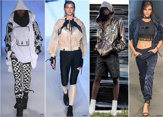 荷叶边和褶边对2018春夏的女装面料和版型而言依然不可或缺。花式拉链开衫堪称完美单品,使用量感薄纱、荷叶边细节、优雅拉环、光泽效果。经典套袖、拉链口袋、对比条纹松紧袖口保留运动元素。