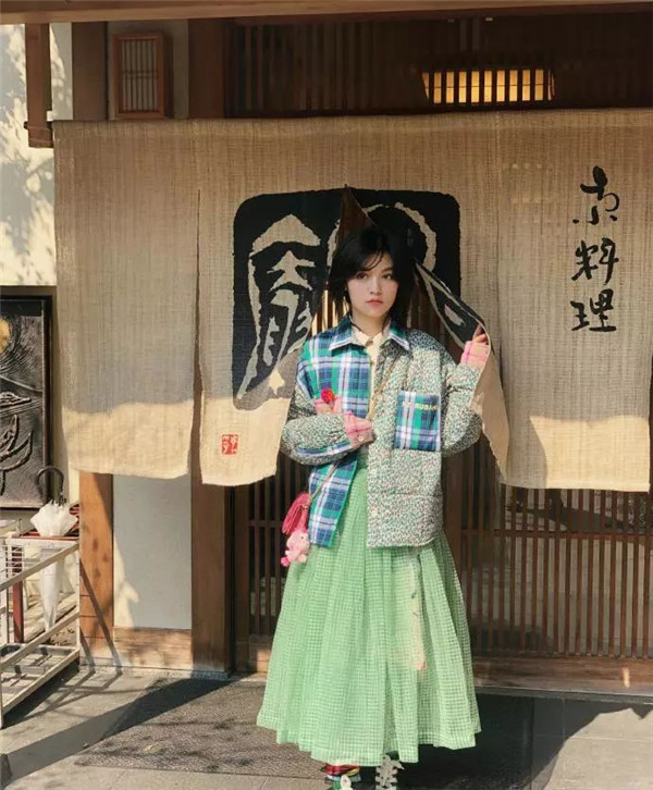 绿色格子单品加入休闲随意的版型,多了些的学院风的味道,穿出了英伦文艺气息。