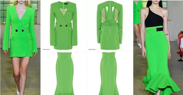 David Koma模特穿一袭荧光绿连衣裙,简直没有更抢镜的了,浪漫的荷叶边设计,给人夏日里活泼灵动的视觉感受。