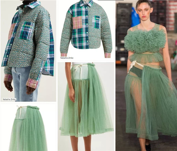 格子豹纹拼接外套,看似混乱却有种奇异的融合感,保暖舒适又个性十足,搭配格纹网纱裙,轻薄面料灵动浪漫,“青春”色调迎面袭来春日气息。