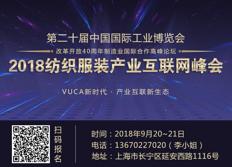 由工业和信息化部、上海市人民政府主办的“第20届中国国际工业博览会——2018纺织服装产业互联网峰会”,将于2018年9月20-21日在上海盛大召开。