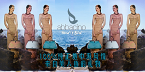 abbacino2013年春夏季新品的主题我们是带有浓重的地中海风格的“美人鱼”主题,所有的产品的设计灵感都来自海边的自然元素,比如摇曳的海草,海面上波光粼粼的阳光,来回荡漾的海浪,天空上的彩虹等等,这些元素都可以abbacino春夏系列女包上看到。