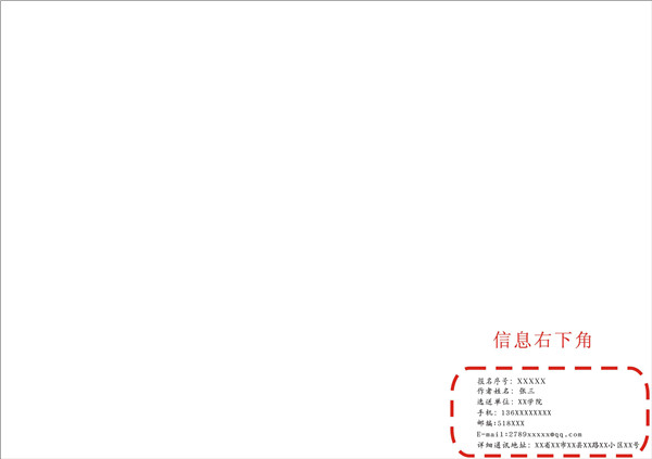 5)在效果图背面右下角标明作者姓名、报名编号(线上报名后系统自动生成)(必填)、选送单位、指导老师、详细通讯地址、电话、邮编、E-mail等(必须与《参赛报名表》填写内容一致),要求字迹工整、清晰,如因此引起争议,组委会不承担任何责任。(参照附件)