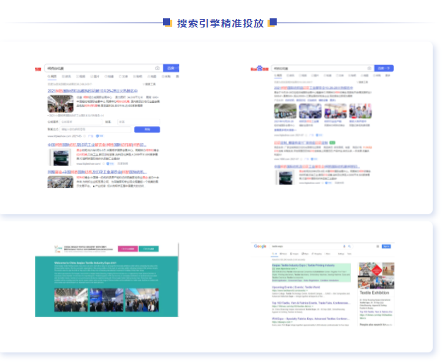 ▼展会在各大搜索引擎,如百度、谷歌、必应等主流平台精准投放词条热搜,确保各领域观众至现场参观采购。