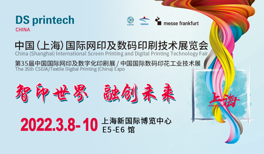 2022年3月8-10日,“2022DS Printech China中国(上海)国际网印及数码印刷技术展览会(第35届中国国际网印及数字化印刷展/中国国际数码印花工业技术展)”将在上海新国际博览中心开启为期三天的丝网印刷,数码印花,工业喷印及个性定制行业盛宴。