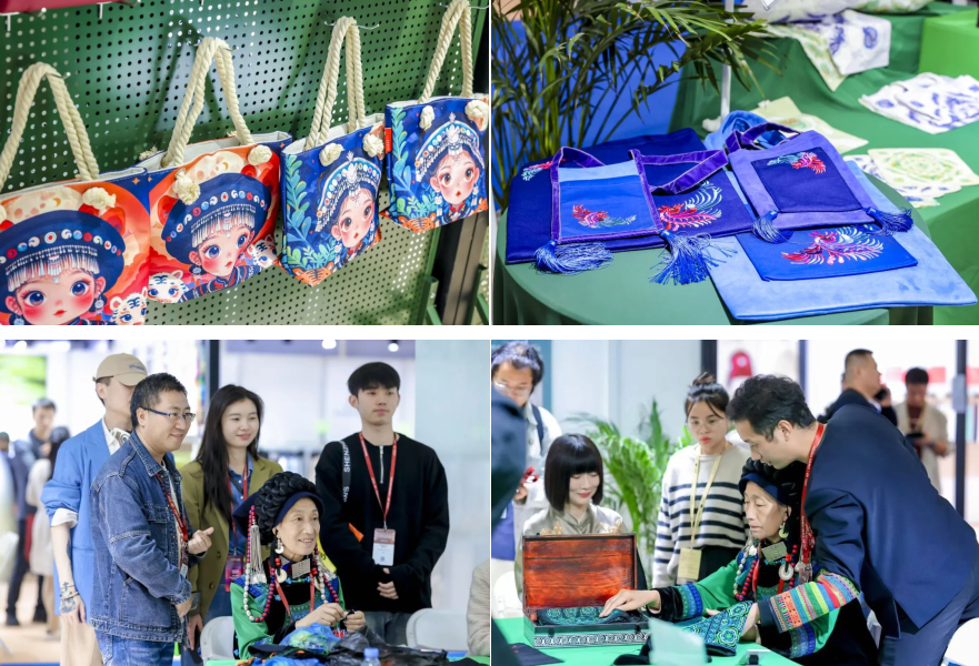 本次国风非遗主题展以“彝绣千年,创新赋能”为主题,现场展示了凉山彝族独特风格的服饰与精美的彝绣绣片,打造出富有立体感的展示空间。展览特别设置互动体验环节,开幕首日,国家级彝绣传承人阿西巫之莫老师亲自带领工作坊,通过生动示范和细致讲解,让观众亲身体验彝绣制作过程,感受这项工艺承载的文化与情感力量。